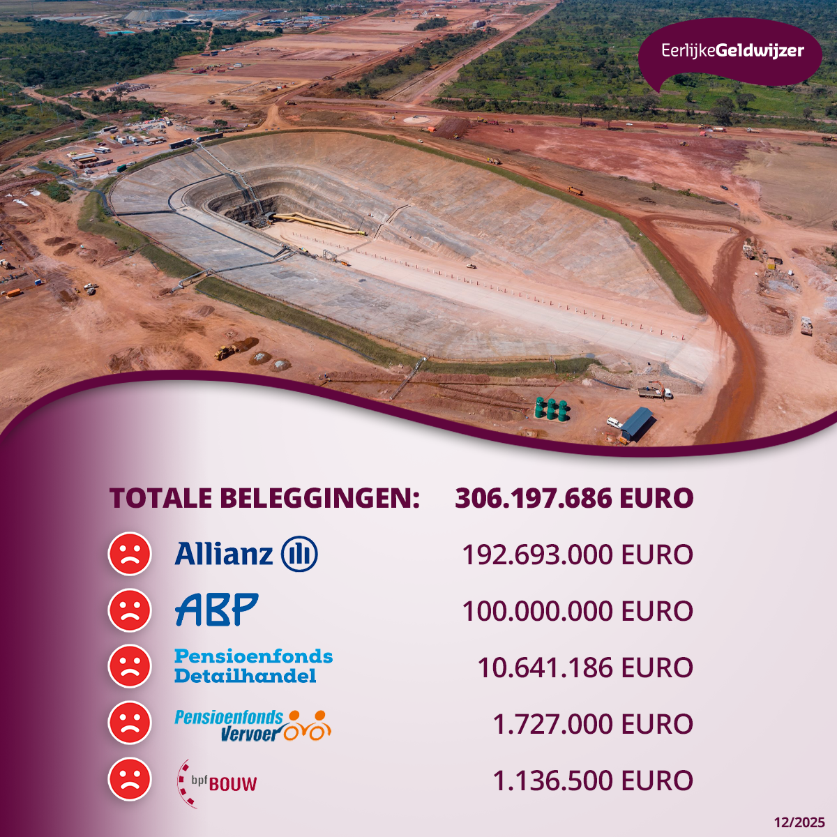 Verzekeraar Allianz en pensioenfondsen ABP, Detailhandel, Vervoer en BpfBOUW investeren in totaal 300 miljoen euro in de twee mijnbouwbedrijven die eigenaar zijn van de Kamoa-kopermijn in Congo. In en rondom deze mijn, de grootste kopermijn van Afrika, heeft de lokale bevolking te maken met ernstige mensenrechtenschendingen en milieuvervuiling. De investeerders doen niets om deze mijnbouwbedrijven op deze misstanden aan te spreken. Dit blijkt uit nieuw onderzoek van de Eerlijke Geldwijzer.